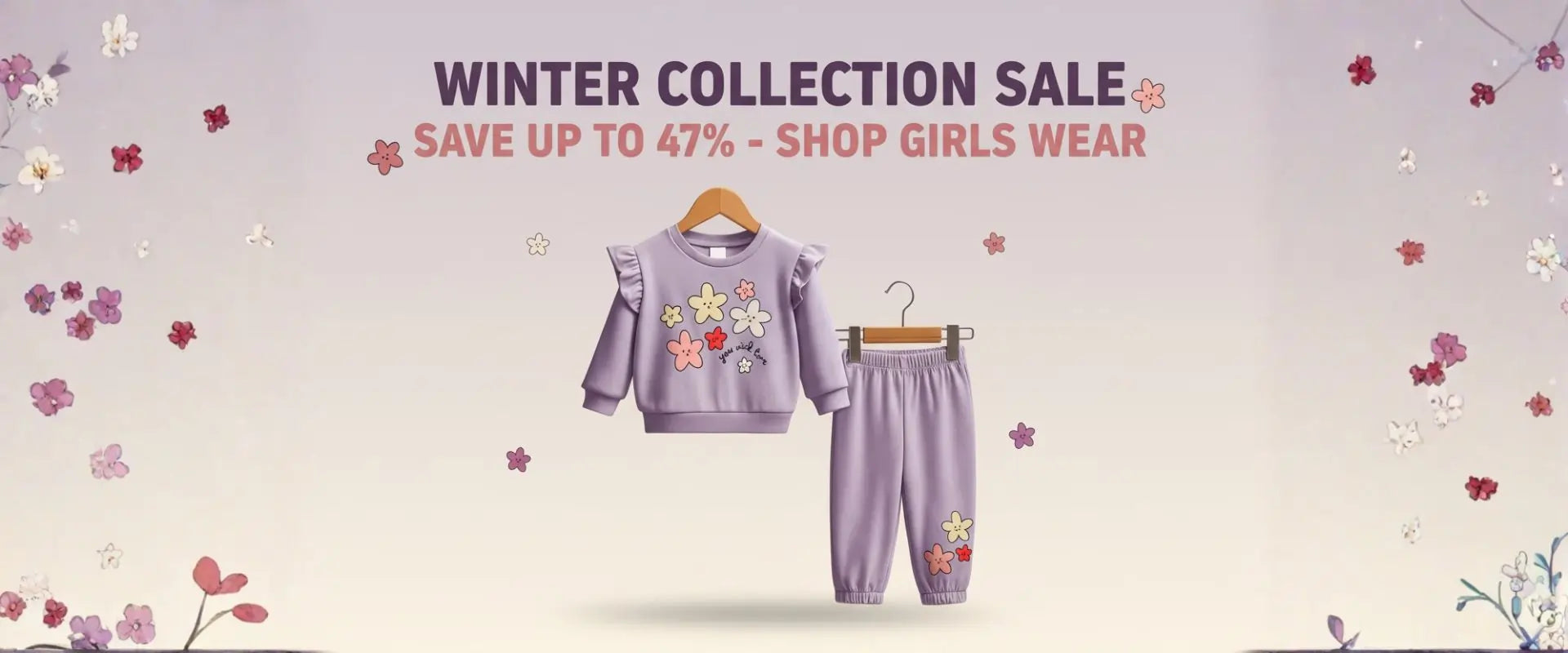 Regular price Rs.1,999.00Regular priceRs.3,200.00Sale price Rs.1,999.00Girls Cotton Fleece Floral Sweatshirt & Trouser Set – Cozy Winter Wear