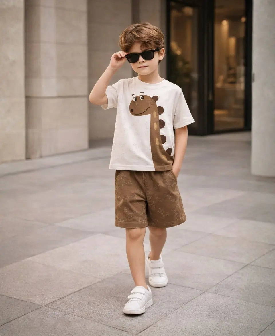 Parents appreciate the gentle fabric feel, durable graphic print, and flexible elastic waistband that supports active movement. The dinosaur print is designed to resist fading, while the solid-toned bottom with subtle dino patterns adds style without compromising comfort. It's ideal for active kids who need breathable daily wear.